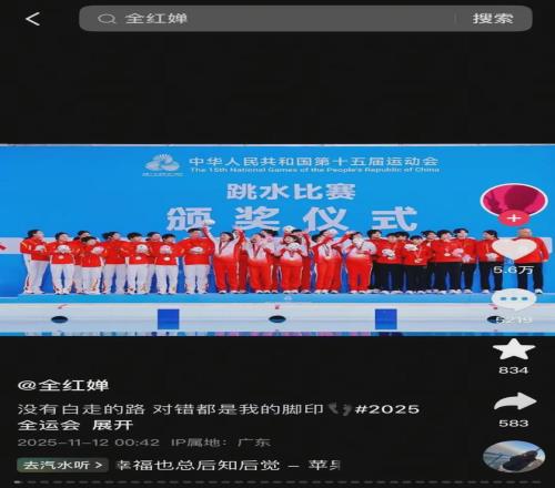 今天(11月12日)凌晨,全红婵在社交媒体平台上晒出多张十五运会现场照片,其中包括她和队友合影、颁奖仪式以及大量全运会个人花絮内容。 配文写道:没有白走的路,对错都是我的脚印。