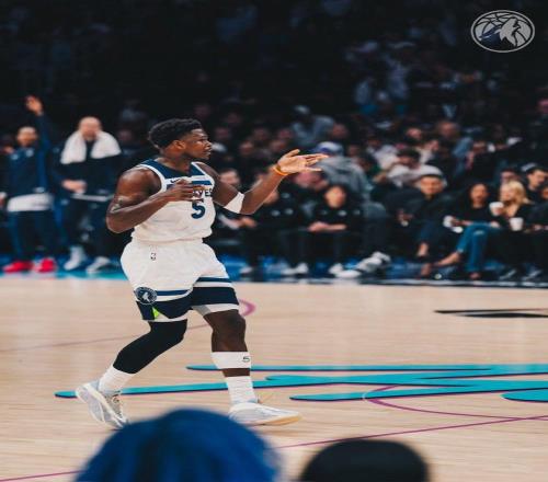 森林狼队,里德15中10,三分球7中4狂砍29分4板3助2帽、兰德尔17中10高效的砍下了23分10板4助、戈贝尔7中5贡献了13分12板1助、迪文岑佐13中5,三分球8中1得到11分8板4助2断、麦克丹尼尔斯5分2板3助2断2帽、康利5分1板3助、海兰德4分3助、克拉克2分。 爱德华兹33+3+5创NBA历史第1神迹 森林狼队超级巨星安东尼爱德华兹,在此役强势爆发。爱德华兹出场38分钟,19投10中,三分8中2、罚球14中11,狂轰33分3篮板5助攻1抢断的数据。爱德华兹以53%的命中率砍下了全场的最高分,他还是此战走上罚球线次数最多的球员。坚决的冲击内线,展现了爱德华兹强烈的求胜欲望。 爱德华兹持球进攻